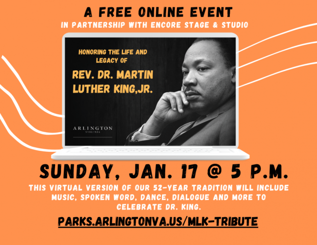 Arlington’s annual tribute to Rev. Dr. Martin Luther King, Jr. is virtual in 2021! Join us Sun., Jan. 17 at 5 p.m. for a free online event where you can choose what you want to see, when you want to see it. From music and dance to spoken word and community dialogues, there will be something for everyone. Help us carry on Dr. King’s legacy by remembering our history and joining us in a call to shape our future.