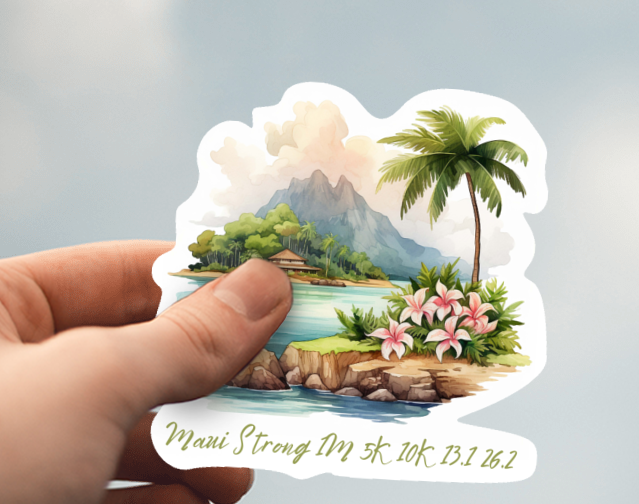 You have the flexibility to complete your chosen race anytime between now and the end of the year. Your stick and race bib will ship out starting the beginning of September. These tangible rewards – a beautiful Maui Strong 3-inch vinyl sticker and a uniquely personalized bib – will serve as lasting reminders of your active involvement and unwavering commitment.