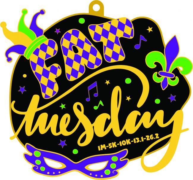 Fat Tuesday, or Mardi Gras, was February 13, 2024! Mardi Gras refers to events of the Carnival celebration, beginning on or after the Christian feasts of the Epiphany and culminating on the day before Ash Wednesday, which is known as Shrove Tuesday. Mardi Gras is French for "Fat Tuesday", reflecting the practice of the last night of eating rich, fatty foods before the ritual Lenten sacrifices and fasting of the Lenten season. Celebrate Fat Tuesday with a 1M 5K 10K 13.1 or 26.2 mile run (or walk). You have all of February to complete your race.
