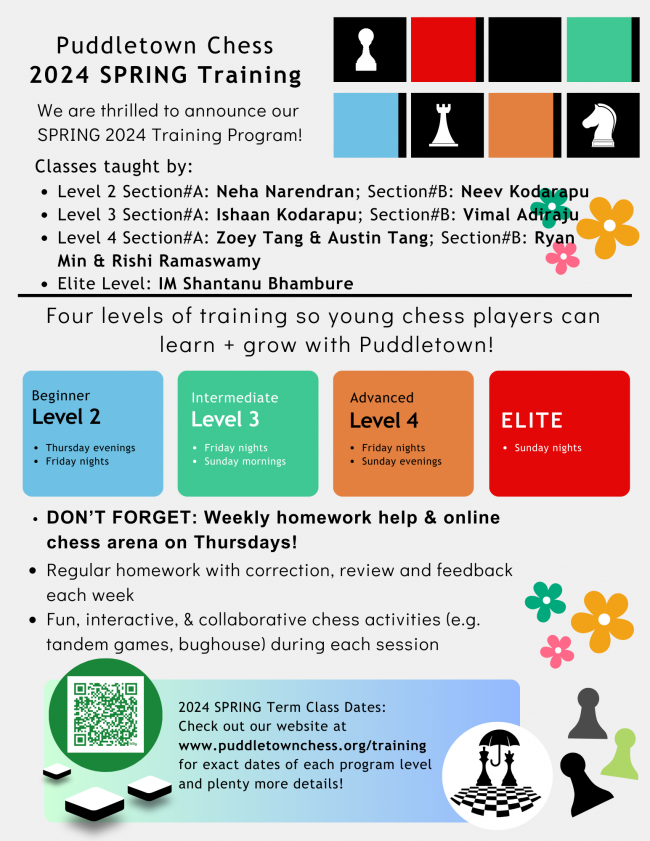 Four levels of programs so young chess players can learn + grow with Puddletown!