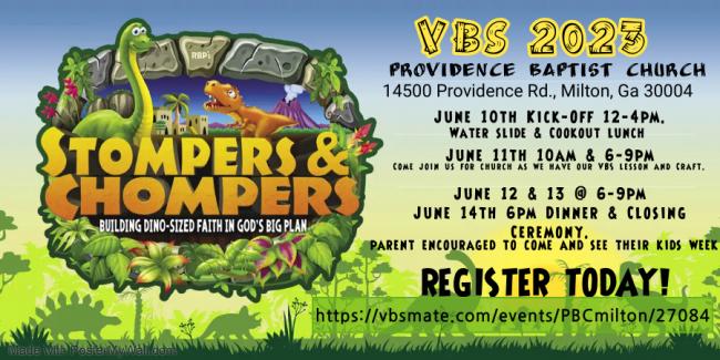 Register today! https://vbsmate.com/events/PBCmilton/27084