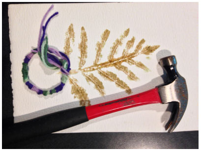 Materials needed: A small hammer, some nice juicy flowers and/or leaves from outdoors, a couple of paper towels, paper