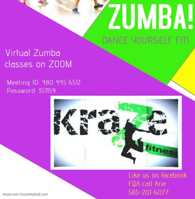VIRTUAL EVENT: KraZe Fitness Zumba- Tuesdays and Thursdays at 6pm Eastern